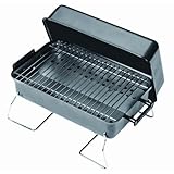 The Char-Broil charcoal tabletop grill is a great option when looking for a simple, affordable, portable tabletop/camping grill.It features 187 square inches of cooking surface, about 6-8 hamburgers of space.It cooks on an easy to clean chrome plated cooking grid.The legs fold securely to the top for easy portability.Simple, easy.
