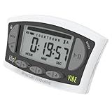 American Innovative's Klip! Vibe Kitchen Timer features a silent vibration and/or audible alerts for dual countdown timers. The vibration function makes the Vibe handy around the home in the office or kitchen. Dedicated plus (+) and minus (-) keys for hours, minutes and seconds make adjustments simple. Carries easily on the belt or apron, stands upright on the counter, or stores on the fridge using the integrated magnet. Functions include: dual countdown timers (A and B) with vibration and/or audible alerts and batch feature, stopwatch, clock, and keypad lock. Intuitive LCD with Elapsed Time Graphic: like the original Klip! timer, the Vibe features a high-contrast LCD display with handy elapsed time bar graphic. Ten segments at the top of the display disappear with the passage of time, making it easy to see the percentage of total time remaining at a glance. Expired timer counts up after sounding to indicate overage. Maximum Timer Duration:24 hours; Audible Alarm Duration: 60 seconds or until silenced; Clock Modes 12 hour/24 hour. Measures 3.7 by 1.6 inches, batteries included.