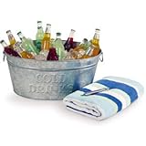 Chilled drinks for a crowd fit tidily in one place - on your table, sideboard or patio - using this galvanized drink bucket. The rustic touch is perfect for a casual gathering, and two side handles make it possible to cart around and empty the bucket when you're done. Holds your favorite brews, sodas, wines, juices or other beverages on ice. Also fun for serving shellfish, fruit, chilled desserts and more, family-style.