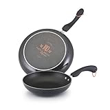 Enjoy the effortless food release and easy cleanup you get from nonstick cookware at an affordable price with this stylish twin pack of open skillets (9- and 10-inch). In addition to a nonstick interior, these pans feature a speckled porcelain enamel exterior in charcoal that's stain resistant and a breeze to clean up. Their aluminum construction heats quickly and evenly. The rubberized handles provide a cool touch when on the stove, and they're dual riveted to the saucepan for added durability. The pans are also outfitted with a copper-plated ring for convenient hanging. Oven safe to 350 degrees F. Hand wash only. Backed by a limited lifetime warranty.