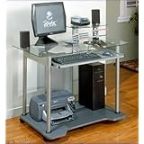 This Jupiter Computer Cart in champagne and charcoal would be a great addition to any home or office. This cart features6mm tempered glass, slide out keyboard and privacy panels for added stability. Other features include 10 slot CD holder, metal tubular legs and five castors with two locking for safety. Accessories are not included. Available in champagne charcoal or pewter cherry please specify when ordering.